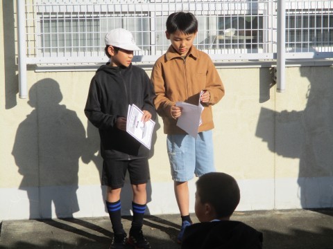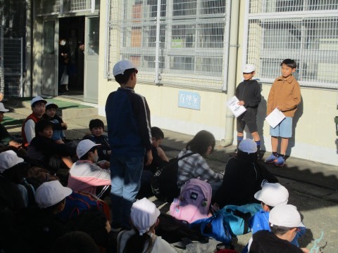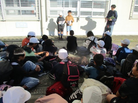 児童会の代表役員が『なつやすみ』のあいうえお作文で夏休みの過ごし方について発表してくれました。