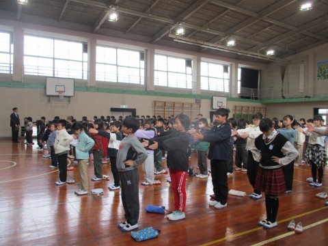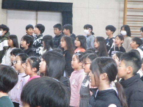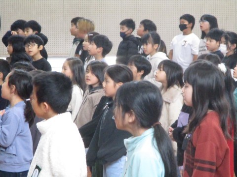 今日も2学期最後にみんなで歌う校歌。柔らかな声が体育館に響きます。