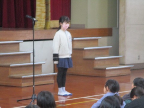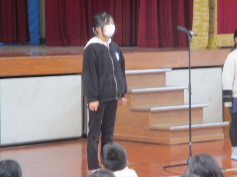 児童会を代表して,5年生と6年生の2人が冬休みの過ごし方について,わかりやすく発表してくれました。