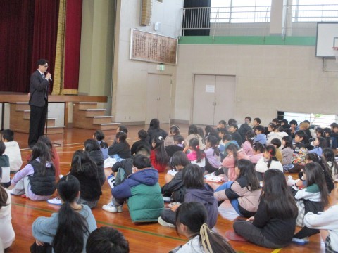 先生からも,冬休みの過ごし方について,大事なお話がありました。冬場は暗くなる時間が早いので,外で遊ぶ時間はおうちの人と相談して暗くなる前に帰るようにしましょう。自転車に乗るときはヘルメットをかぶり,夜道に車からもわかりやすいようにライトををつけて乗るようにしましょう。冬休み中は,プレゼントやお年玉などをもらえる機会があるかもしれません。もらったものやお金は,お友達にあげたり,おごったりせず大切に使いましょう。携帯などSNSの利用では人を傷つけるようなメッセージにならないよう気をつけましょう。寒い日が続きますが外でも体を動かすなど体調に気をつけて,3学期また元気に学校で会いましょう。