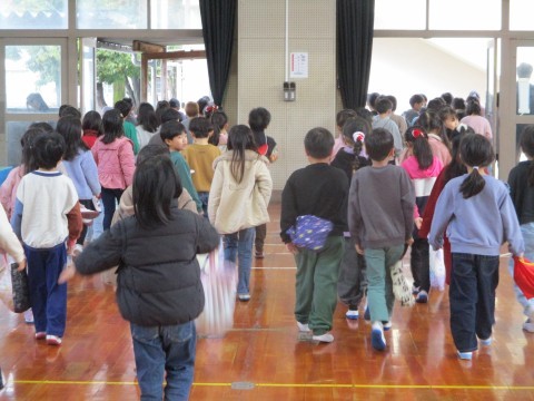 今日の会場の曲は,クリスマスソングに合わせて・・・退場です。みんな心ウキウキで教室に向かっています。
