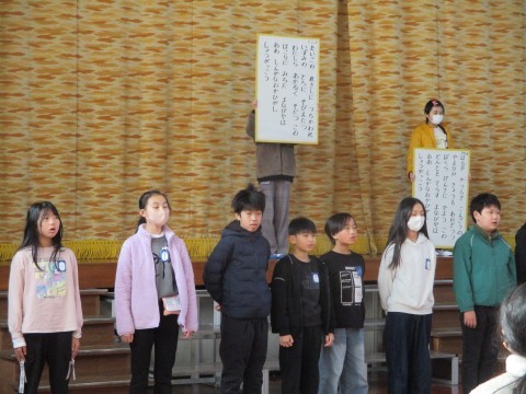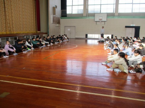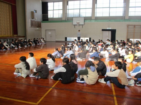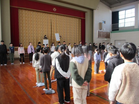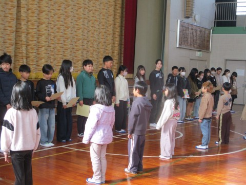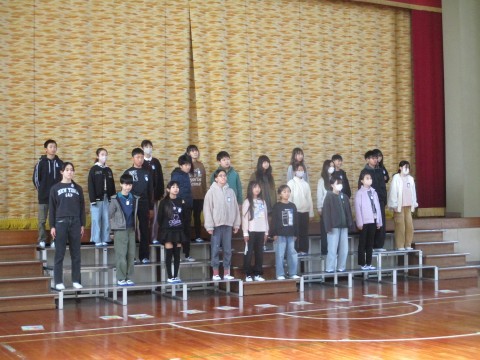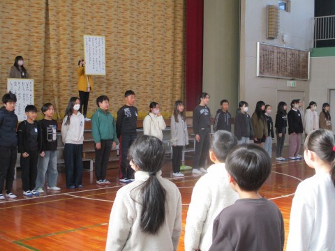1年生~6年生がそろう最後の校歌斉唱。優しい歌声が体育館に響きます。