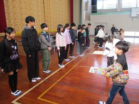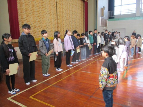 1年生から6年生に卒業をお祝いするメッセージの色紙が贈られました。