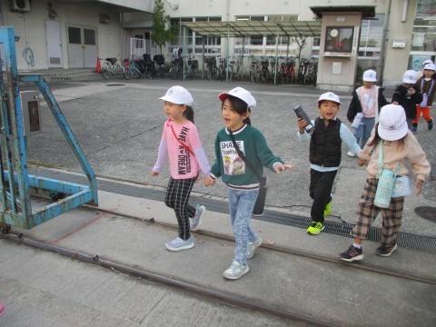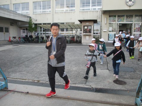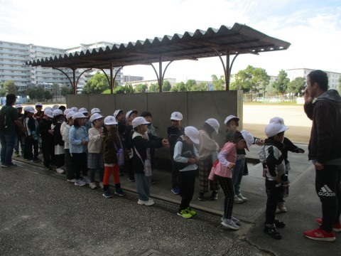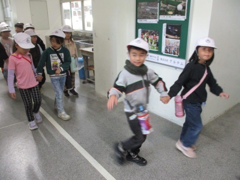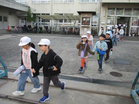 今朝は大変冷え込みましたが・・・1年生元気にどんぐり拾いに大泉緑地まで向かいます。