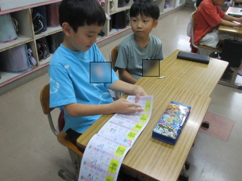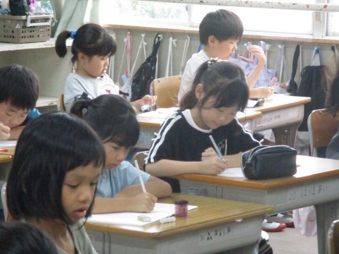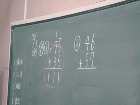 前の黒板に時間割を書く時に,『今日に時間割全部漢字で書けるなぁ』とクラスのみんなで喜んでいました。
