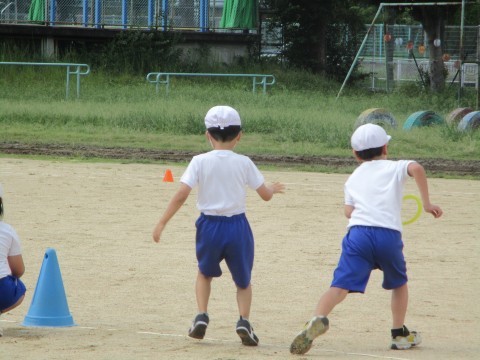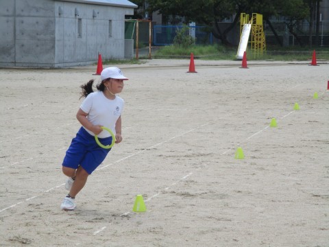 ターン設定の走運動なので,カーブの走り方を工夫します。スピードを保ったままはとても難しいです。