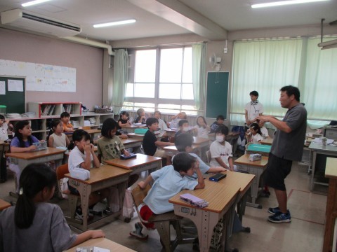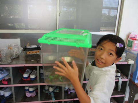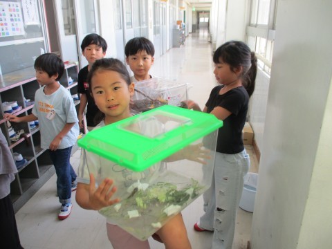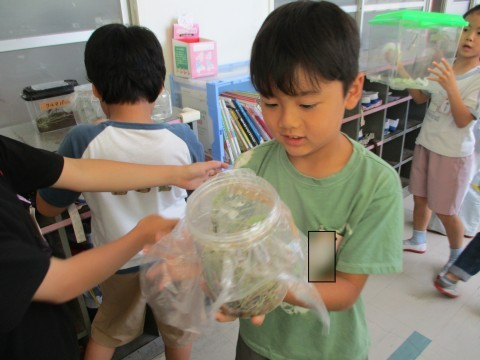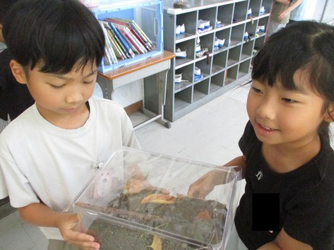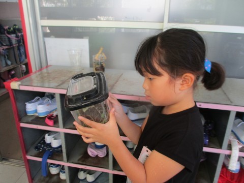 虫みつけから今日は虫の家をつくってタブレットで調べるところまで探求の時間です。