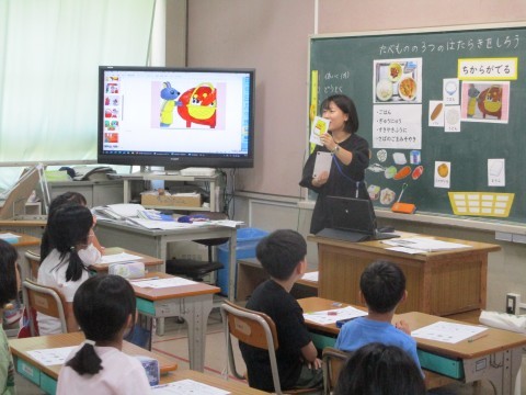 グループやペアで相談しながら虫を観たり…タブレットをみたりしています。