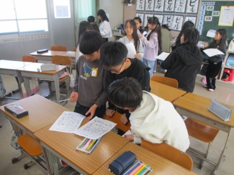 冬休みにしたこと、頑張ったことなどをビンゴ形式で友達と共有しています。話し合うきっかけづくりになりますね。