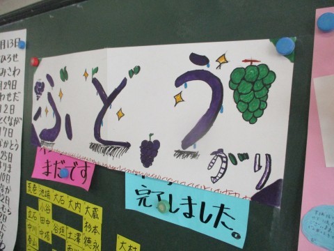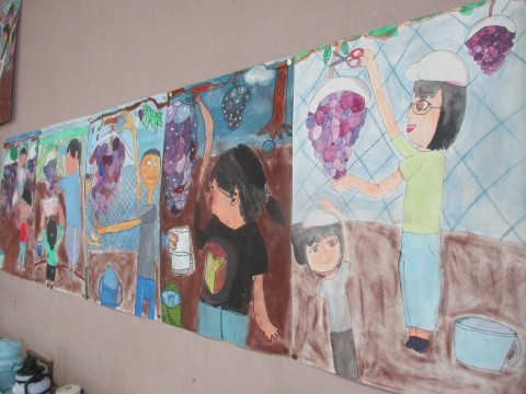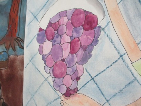 楽しかった校外学習。ぶどう狩りの絵を描いています。