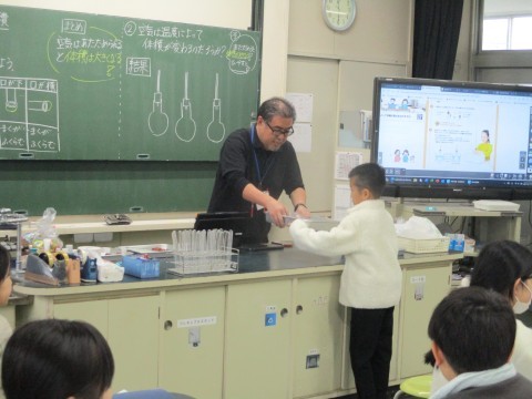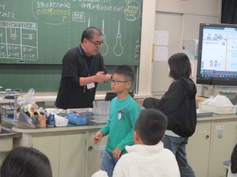 理科の実験道具を順番に準備しています。しっかり指示を聞いて実験にチャレンジします。
