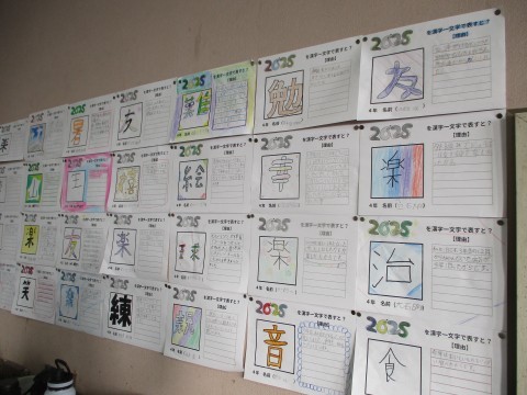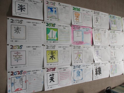 今年1年を振り返って漢字一文字で表すと・・・4年生の子どもたちの素敵な1年が伝わってきます。
