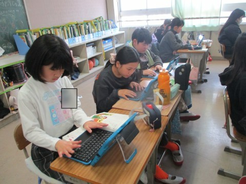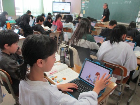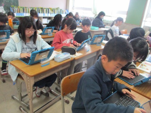 理科の学習のあとに,タブレットを使ったお楽しみリラックスタイムです。みんなとても楽しそう。