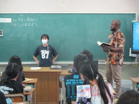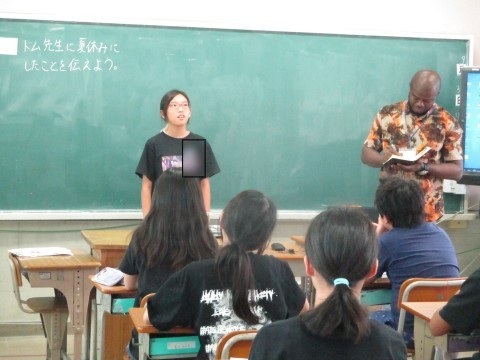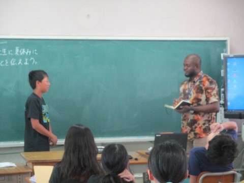 今日は,NSの先生に夏休みの出来事を伝えようのめあてでスピーチをしました。