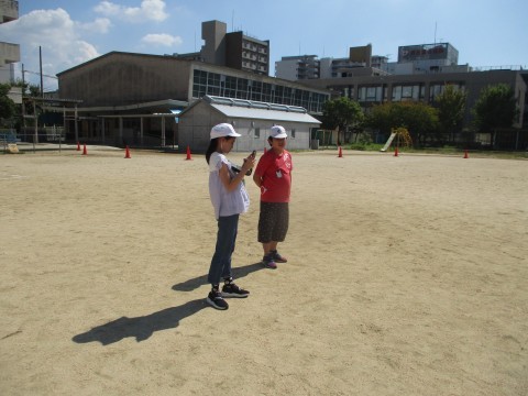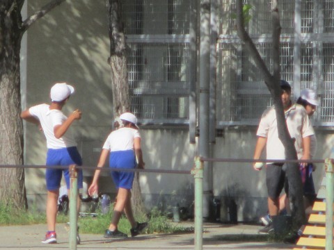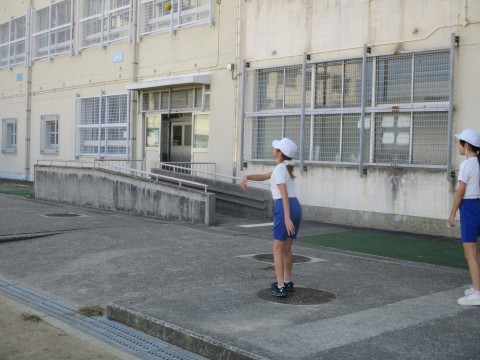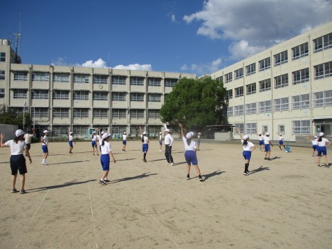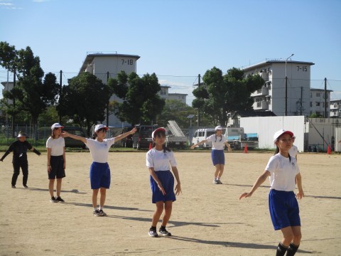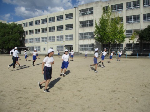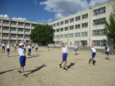 少し気温は高いですが,秋晴れのいい気候です。堺っ子体操も板についてきました。