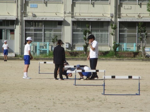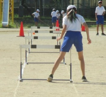 堺っ子体操の準備運動の後は…50mハードル,ソフトボール投げそのほかの種目にも分かれて種目練習スタートしました。