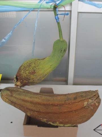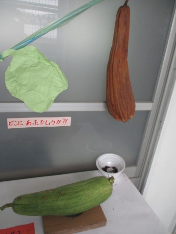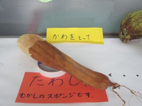 グリーンカーテンに実っていたヘチマ。成長の経緯が一目でわかります。