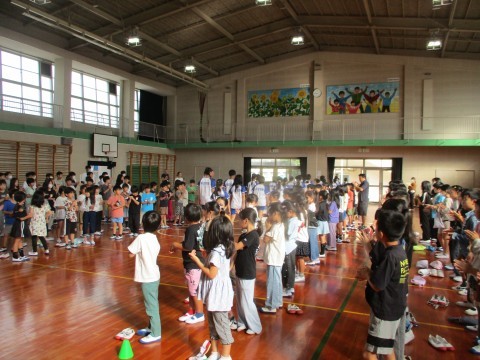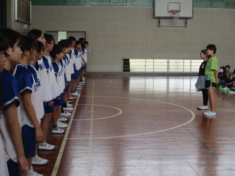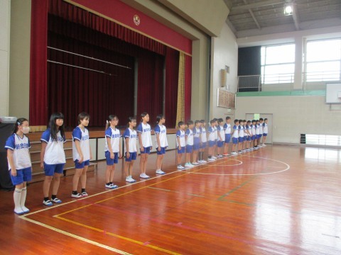 連語運動会に出場する6年生にエールを送る会です。みんな静かに整列して6年生を迎えます。5年生の児童会役員のメンバーがリードしてくれます。