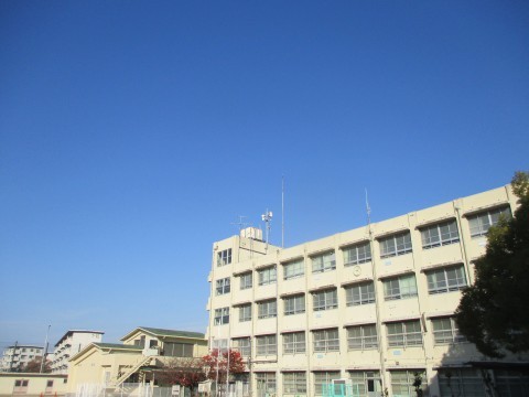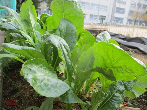 今日はとてもさわやかな青空。学習園のダイコンも育っています。