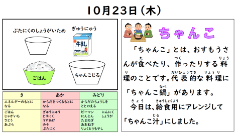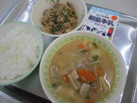 今日のメニューは…さつま汁。サツマイモが甘くておいしかったです。
