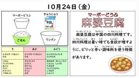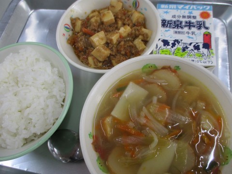 今日のメニューは‥‥麻婆豆腐甘口ですが辛味も少し効いた美味しい麻婆豆腐でした。