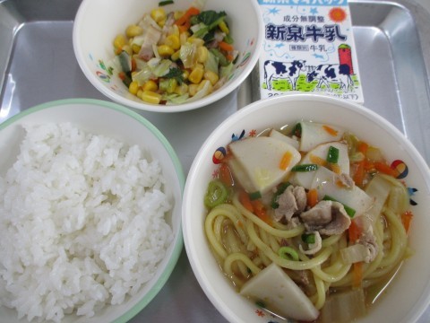 ごはん、牛乳、昆布入りおでん、はくさいのおひたしです。