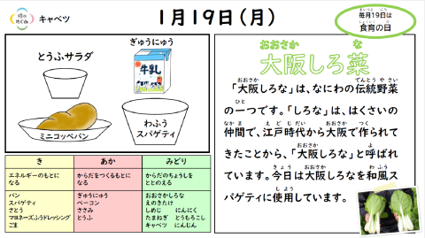 今日のメニューは・・・和風スパゲティ。しょうゆ味がとてもおいしかったです。