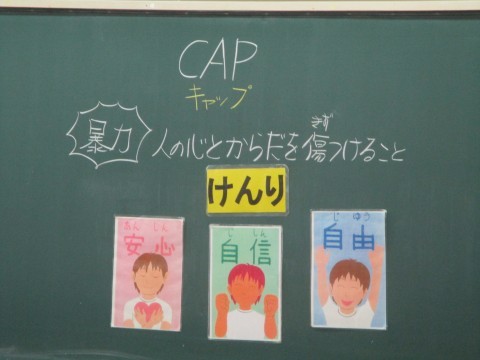 CAPプログラムの授業を受けています。人の心とからだを傷つける暴力から守られる権利があることを学びます。
