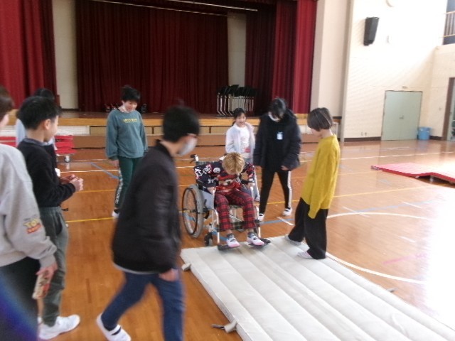 4年生ひかり学級との交流 公開日 2025/02/27 更新日 2025/02/27 光竜寺 4年生がハンディキャップ体験をひかり学級の人たちに紹介しました。調べたことを発表した後、車いす、アイマスク、つえなどを使って体験しました。やさしく介助する姿がみられました。