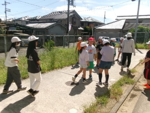 学校にある備蓄倉庫の中を見学しました。そのあと、非常用トイレ設置場所も確認しました。