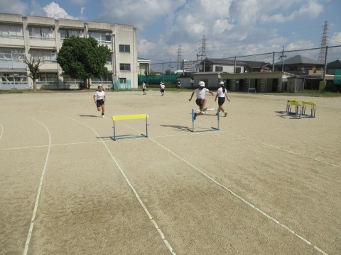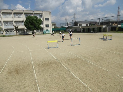 連合運動会に向けて練習を頑張っています。記録を伸ばしたい,ハードルの近くをこえたい,跳んでいる間の姿勢を気をつけたいなど,それぞれの課題に向けて練習しています。