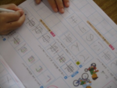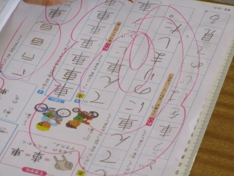 きょうのかん字は「車」です。 書き順(かきじゅん)をしっかりとかくにんします。