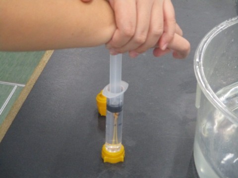 とじこめた水をおす。 おせる? おせない?