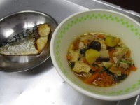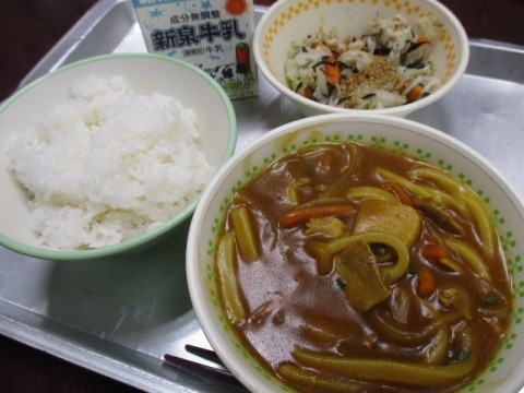 「ごはん、牛乳、カレーうどん、和風サラダ」