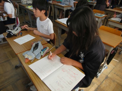 円の面積の求め方を学習しています。今日は,1/2,1/4の円の面積を求めました。