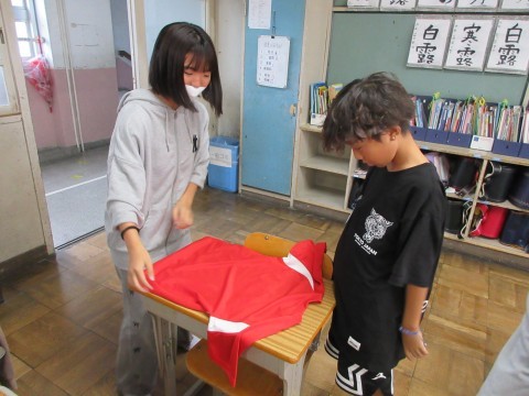先週洗濯して干していたユニフォームを取り入れてたたみました。おうちでもやってみてくださいね。