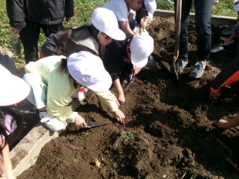 1学期に植えたさつまいもを収穫しました。猛暑であまりたくさんはできなかったのですが、みんなで楽しくいもほりをしました。