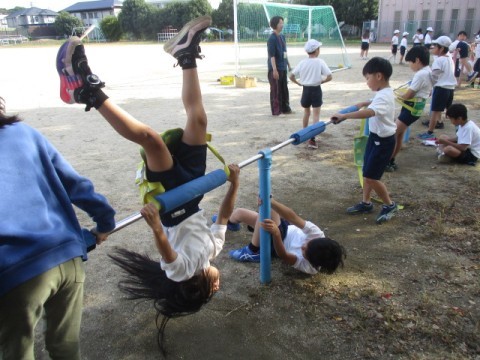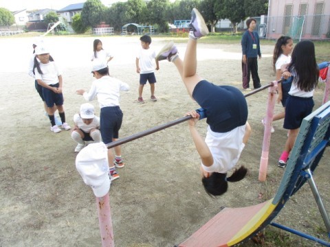 逆上がり、抱え込みまわり、練習中です。 「できたで。 回れたで。」