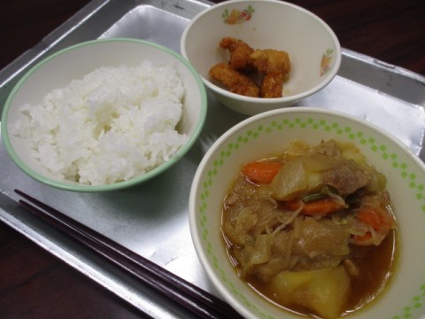 「ごはん、牛乳、肉じゃが、チキン南蛮」