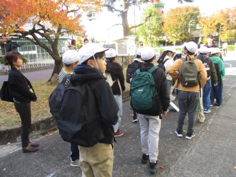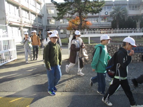 午前中の5年生は、「防災」について学ぶため、校外学習に出発です。