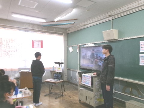 「情報リテラシー」をテーマに、NHKにお手伝いいただき、全国の4小学校とオンラインで合同授業を行いました。各々の教室がテレビに映し出され、光竜寺小学校はユニークさをアピールして、「さすが大阪」とほかの学校に感じられていたそうです。