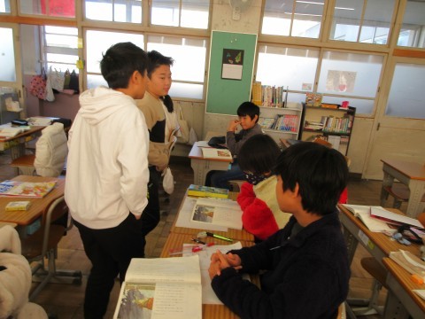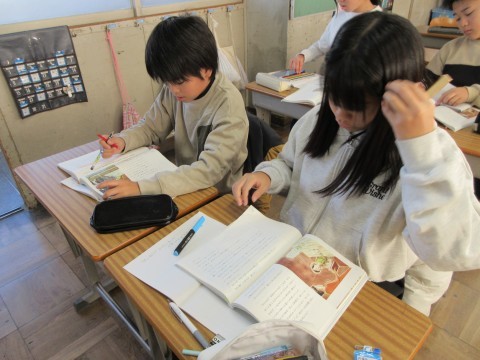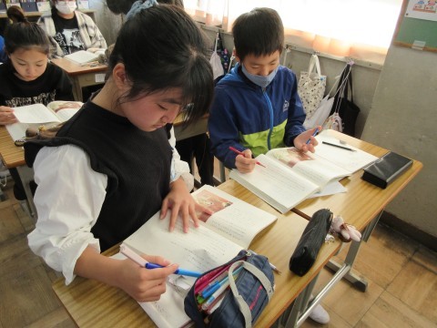 「ぼくのブック・ウーマン」の学習です。ぼくのブック・ウーマンへの見方について,「ここで変わった!」「興味なかったのに細かく見るようになった!」と友だちと話し合いながら読み進めています。