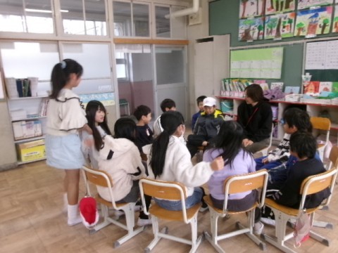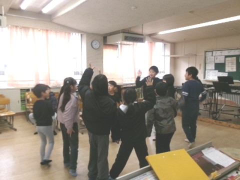 今日は、運動場ではなく、教室で活動しました。6年生がリーダーシップをとりすすめています。低学年はやさしく接してもらい、とてもうれしそうです。