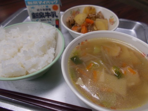 「ごはん、牛乳、ワンタン、中華風肉じゃが」
