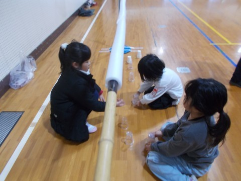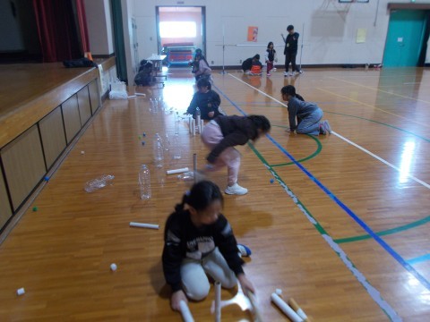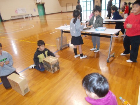 じぶんたちで手作り(てづくり)したおもちゃであそびます。