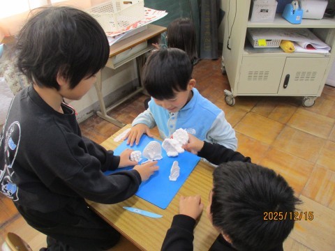 紙ねんどでかたおしして,かおをつくって土台につけると…