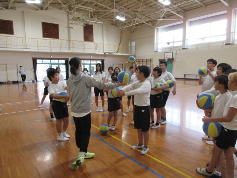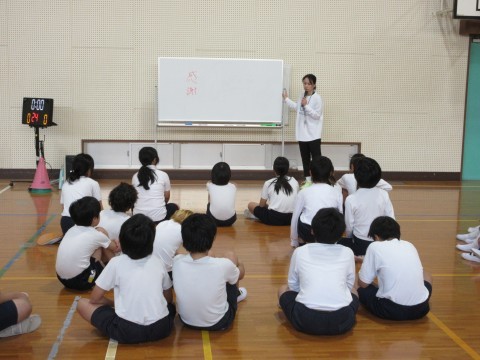 川面さんのプレイに子どもたちは大興奮でした。試合をして,最後は感謝することの大切さを教えてもらいました。「楽しかった~」と大満足していました。