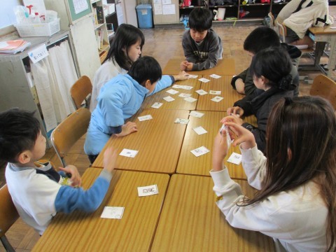 2学期 国語「冬の楽しみ」の学習で作った かるたで お正月遊びをしました。