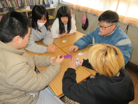 百人一首をしました。昔の歌にふれながら,ぼうずめくりとカルタを楽しみました。