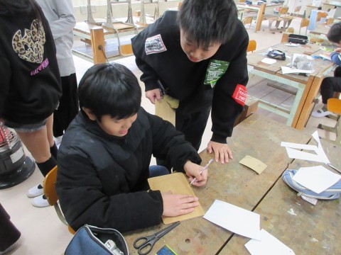 木を切って絵馬をつくりました。今年の目標や午の絵をかいてかざりました。3学期もがんばりましょうね。